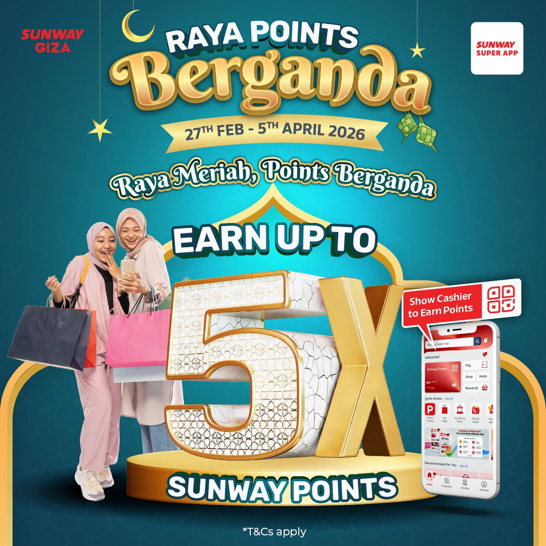 EARN UP TO 5X SUNWAY POINTS at Sunway Giza Mall this Hari Raya from 27 February to 5 April 2026!